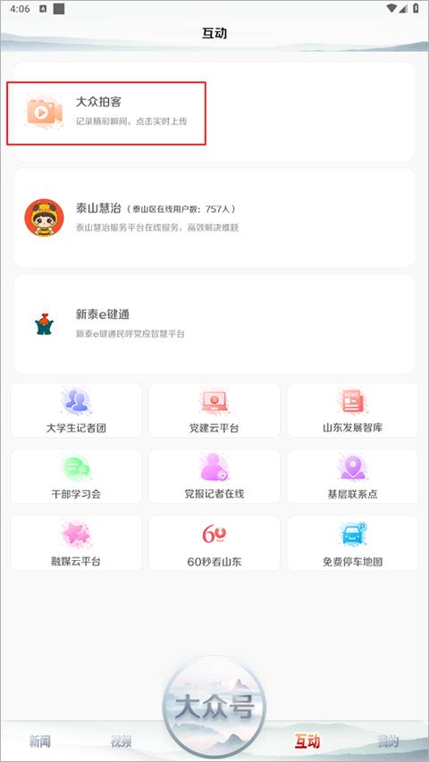 1、首先打开app,在互动界面点击“大众拍客”