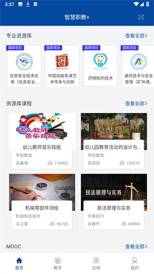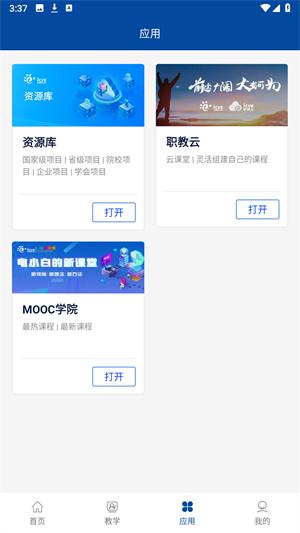 2、在应用界面,为呈现了三大类别,包括资源库、职教云、mooc学院。