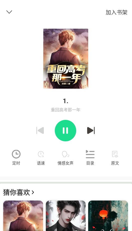 3、支持了小说听书的服务,如果你看累的话,使用听书的模式,静静来聆听精彩吧。