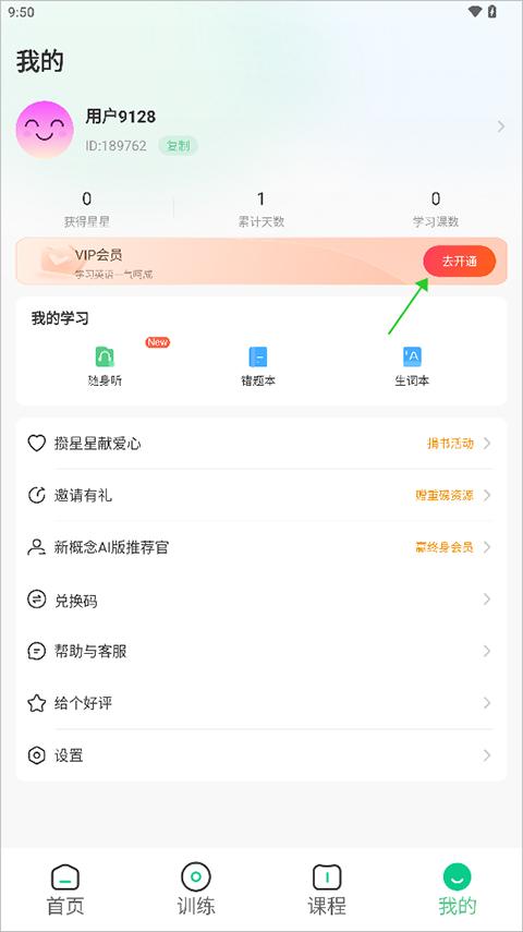 打开并登录新概念AI版app后进入【我的】页面中点击【vip会员】右侧的【去开通】按钮