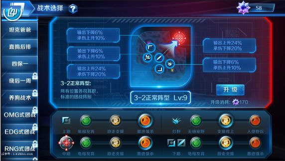 战术系统是针对整个队伍打法影响的一个战斗强化系统,还是以选手为核心来制定的。还是上面四人保Weixiao的例子,战术核心肯定是选择以下路为主,打野方向为多游走下路,保证下路发育,下路的风格以保守为主,尽量开出Weixiao的被动技能。