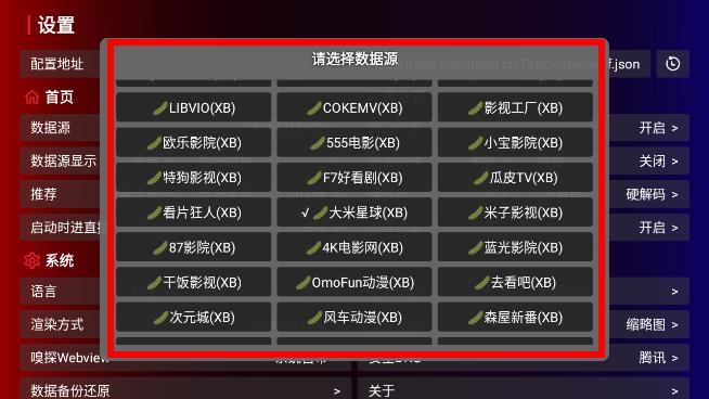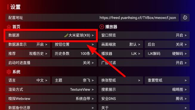 3、进入设置界面以后,我们点击其中的数据源,在弹出的窗口中切换线路。