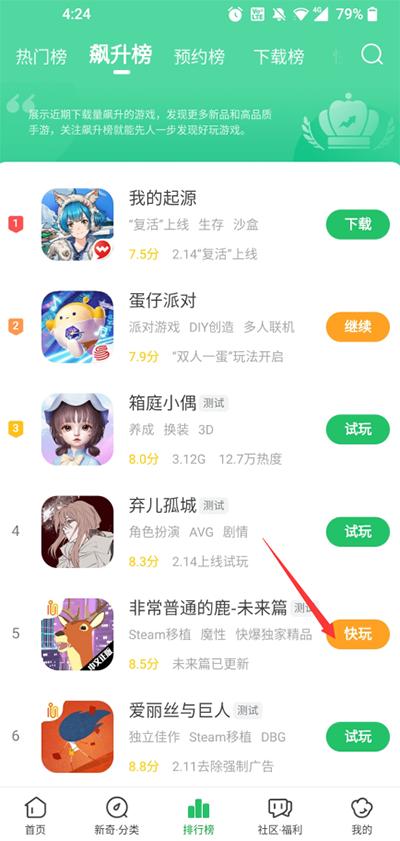 1、找到想要玩的游戏,点击右边的“快玩”按钮。