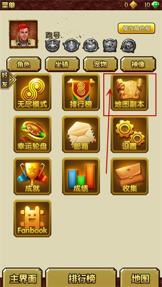2、在以下界面点击地图副本进入地图切换界面。