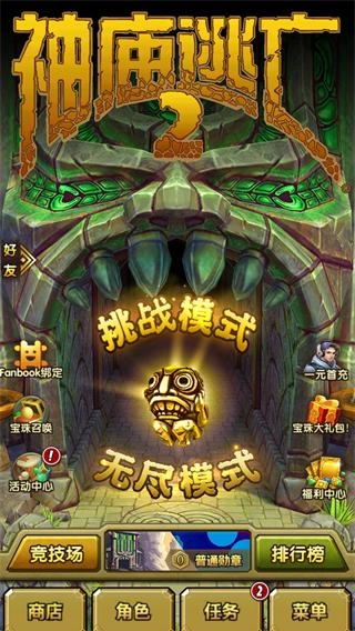 相信不少小伙伴都接触过神庙逃亡这款曾经风靡一时的手机游戏,今天小编要为大家推荐这款继承了“神庙逃亡”经典玩法的续作——神庙逃亡2圣诞节国际版,此作无论是场景的还原度还是游戏的流畅度都十分优秀,经过简短的剧情介绍,就可以来到游戏主场地,主人公偷窃神庙宝物引来怪物追杀,只有不停的逃亡怪物的躲避才能确保安全,那么究竟这款游戏有没有尽头呢?这就需要玩家自行探索了,在游戏开始会有操作提示,人物是自动奔跑,玩家需要控制的是小人的跳跃、滑铲和左右拐弯,对了还有吃金币。操作不难,考验的是玩家的反应力和瞬间判断力,除了向上下左右方向滑动之外,还加入了陀螺仪控制,倾斜手机可以控制人物偏左或者偏右,方便吃到路线两边的金币,操作起来还颇为费神,尤其在障碍较多需要连续躲避的情况下,稍不小心就跌落悬崖了,不过失败也不要紧,游戏内还有极具特色无尽模式等待你来畅玩。