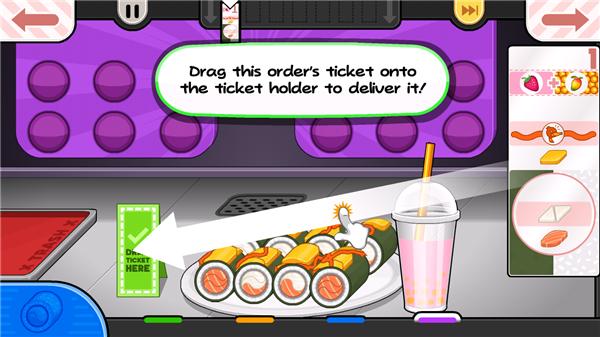 6、顾客的订单就会出现在右侧,玩家需要根据顾客的订单制作出寿司以及饮品,然后点击下方的按钮;