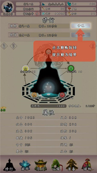 1、灵根:开局时随机五行灵根,最少为单灵根,最多为五灵根。 金灵根提升攻击,木灵根提升生命,水灵根提升灵力,火灵根提升法术,土灵根提升防御、法防。 灵根数越少,初始对应的属性越高,但后期提升灵根时,对应属性的总和会降低。