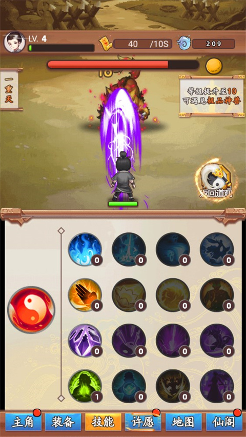 在道长模拟器手游中玩家将扮演初觉醒仙力的小道士,下山除妖,并且强化自己的实力,一路打到九重天,最后登天成仙的历程。游戏中有非常多的角色可以供玩家们选择加入冒险,多种武侠迷耳熟能详的经典武学可供选择,你可集众家之长于一身,通过战斗与历练不断地磨砺自己的武学,最终成为名动江湖的一代大侠。几十个蕴含独特玩法的地图,丰富的剧情事件、自由开挂,让你多线养成,肝到你爽,快来下载体验一下吧!