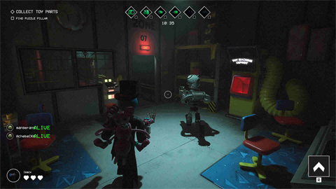 游戏为生存多人6v1战斗玩法。六名玩家将扮演幸存者的角色。他们必须一起解决难题并打造一个史诗般大小的玩具,同时还要努力活下去。而第七名玩家控制了玩具,并且只有一个目标:找到并杀死所有人!