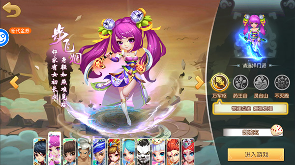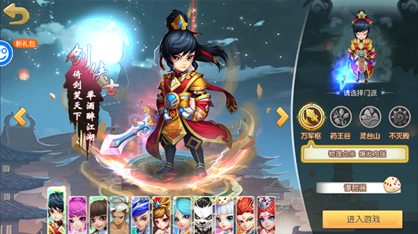 2、然后选择门派和角色进行创建