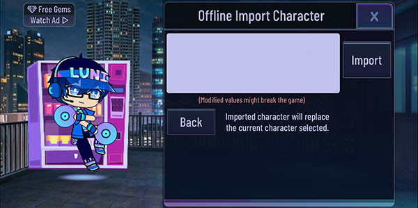 点那个“import”可显示人设,“Back”是清除已输入的代码。