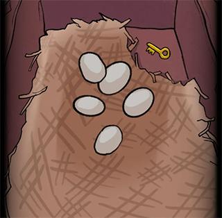 12、把壁虎给猫头鹰吃,猫头鹰会起来站到一边。我们从它的窝里得到门帘(右)和钥匙B