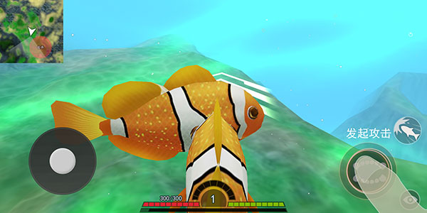 3、遇到了其它同等级或者低等级鱼类,可以点击右侧按钮发起攻击。