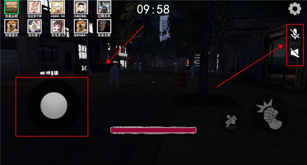 3、左边摇杆可以控制角色的移动,右边可以打开语音和麦克风和队友进行交流