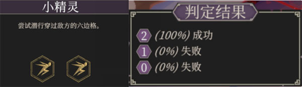 此时,我们想要从精灵姐姐身旁潜行通过,需要进行两次判定,而目前的成功的概率是50%。