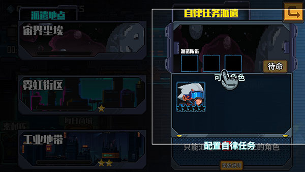 闯关的同时,角色可以参与派遣任务获得不同的奖励!闯关、集材料升级两不误
