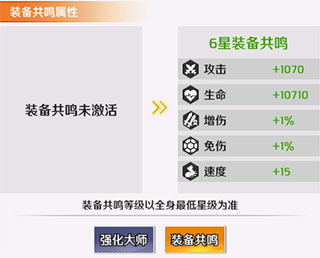 ②装备最高为12星,如果全套最低星数达到一定的星数,会有装备共鸣加成;