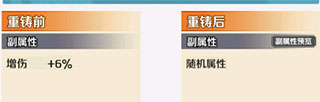 ④装备强化达到+6或者+9的时候会解锁副属性,副属性是随机的,但是不同的部位随机的副属性范围不一样,选择装备重铸可以重新刷新装备的副属性;