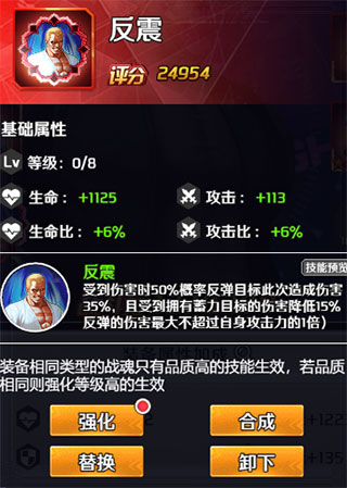 战魂是相对偏中后期一点的追求,一个英雄最多装备2个,但是合理的搭配可以发挥出极强的效果,比如山崎龙二本身就是一个反伤坦克,当他搭配上一个反震战魂之后,你就可以给到对面一个小小的反伤震撼!