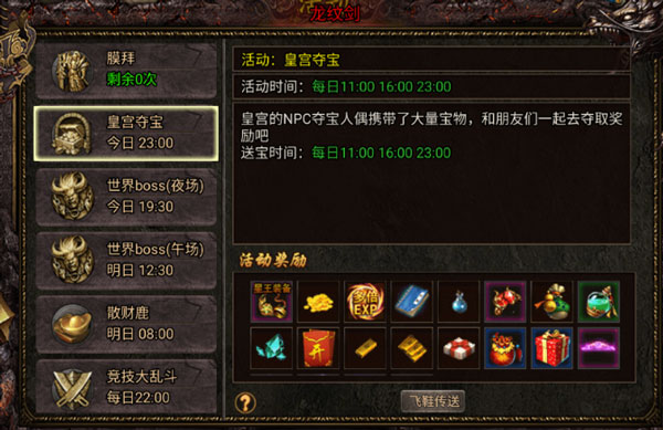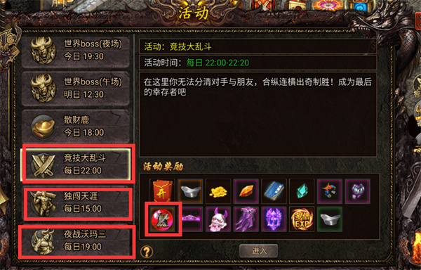 3、活动内皇宫夺宝、竞技大乱斗、独创天涯、夜战沃玛三。