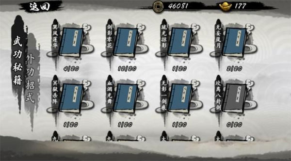 能用铜钱买的,都买,要用元宝买的,我只买内功,并且优先买加内力上限的内功。十连的界面,与我无缘。