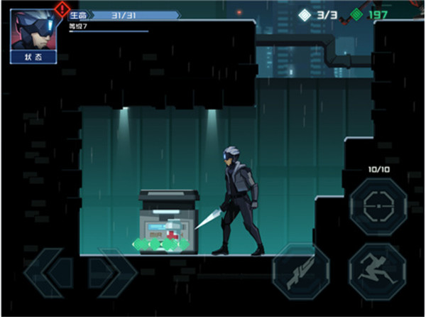 1、玩法采用了横版闯关模式,玩家所控制的主角能够使用刀具或者是枪械和敌人展开战斗;
