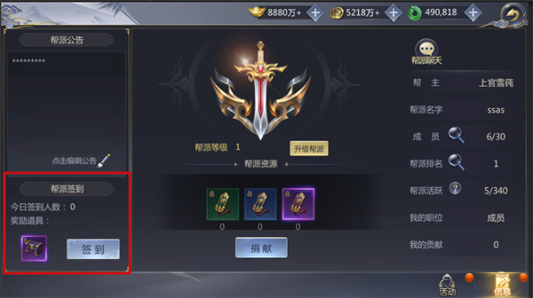 10、帮派公告:由帮主负责编辑,帮主可以点击编辑公告的位置,即可在公告面板留言。
