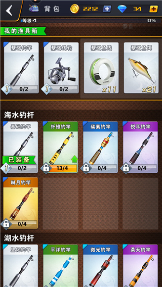 2、丰富的钓鱼装备可以解锁,每一个都拥有不同的属性,适用于不同的场景当中;