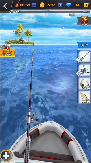 世界钓鱼之旅国际版游戏中简洁明媚的画风、优美欢快的背景音乐、波浪起伏的海涛、神秘的巨型生物、最高荣誉的钓鱼比赛,伴随着你前往世界上最宁静和最具异国风情的垂钓地点享受钓鱼乐趣!