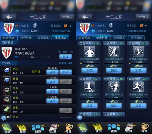 在到来的新版本中,无论是公会科技还是团队挑战,对于《最佳阵容》公会来说都是这次版本的大赢家。前年德国与阿迪达斯最新研发的adizero F50在球场创造的成绩至今还让人们记忆犹新。现在,在游戏中,玩家们也将通过公会科技享受当年德国的球场黑科技的魅力,提高全公会成员的某项属性。而团队挑战的出现,更为公会成员提供了独一无二的公会特殊奖励,公会成员可以通过公会贡献值来排位申请。
