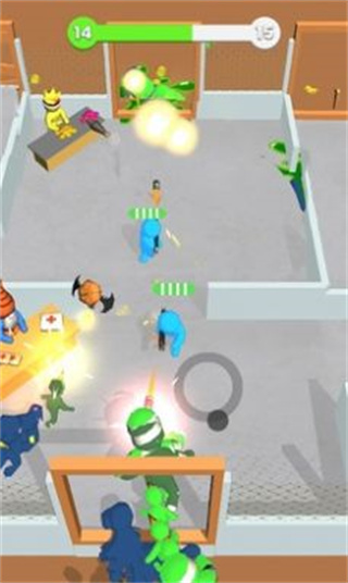 紧张刺激的战斗开启,使用不同的武器装备成功的将所有的僵尸射击消灭!