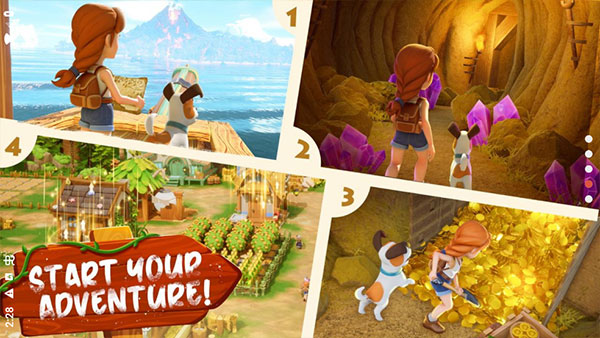 1.农场生活与冒险探索并重:家庭农场冒险巧妙地将温馨田园生活与刺激冒险挑战融为一体。玩家既能享受种植作物、饲养动物、升级农舍的乐趣,又能踏上神秘岛屿、挖掘远古遗迹、解谜寻宝,双重玩法交织,提供丰富多元的游戏体验。