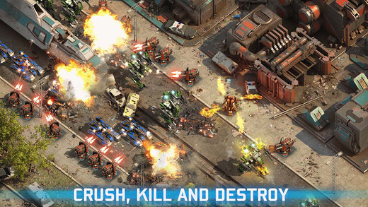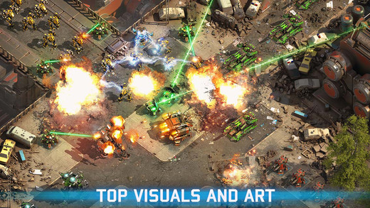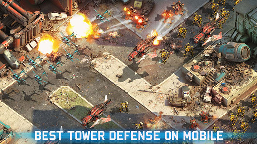 从游戏的画面制作水准来看,该游戏已经达到了塔防游戏的巅峰水准。场景中的科幻元素非常多,作为《史诗战争》的续作,游戏在细节方面下足了功夫,包括机甲,武器,以及爆炸光影。举一个简单的例子:坦克在受到加特林机枪打击时,坦克装甲上会反射子弹并随之擦出火花,配合音效,以及末日场景,则更增加了游戏的真实性。而普通步兵在受到攻击时,身上会出现大量鲜血直至身首异处。当然,这一点对于小朋友来讲有点太过于血腥,做父母的人可不要让孩子看到哦。