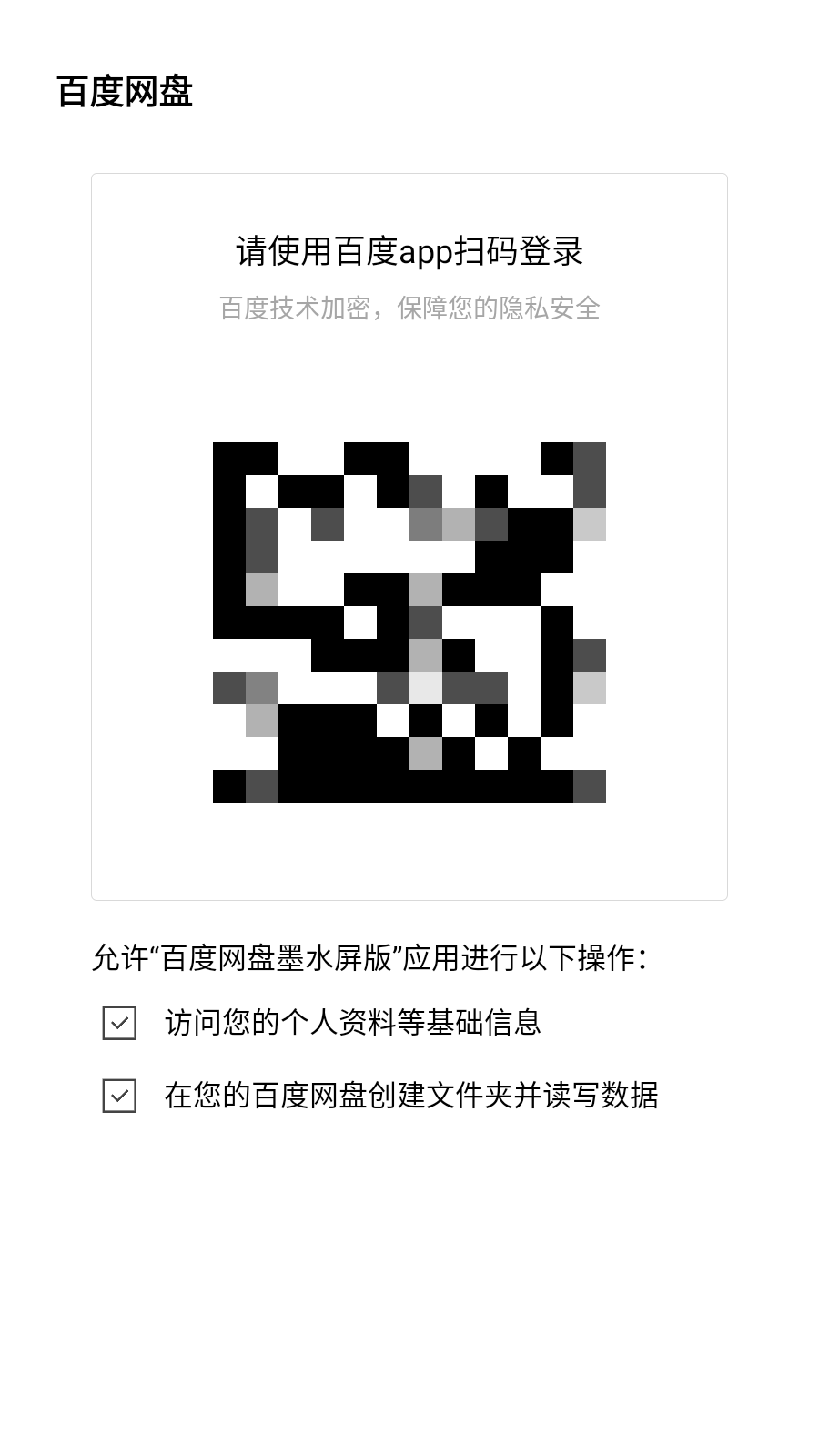 2.打开进入App的登录页面,使用百度App或者官方版百度网盘App扫码登录