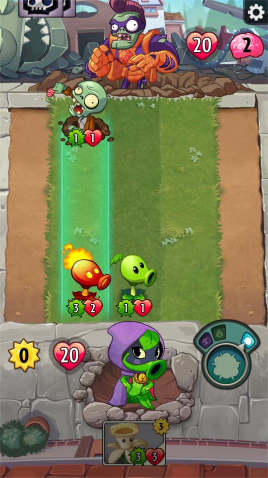 使用代表自己阵营的角色卡牌和对手进行对战。像是豌豆射手、火爆辣椒等经典角色都会在游戏中以卡牌的形式出现,另外还会有各种法术卡牌在游戏中出现。