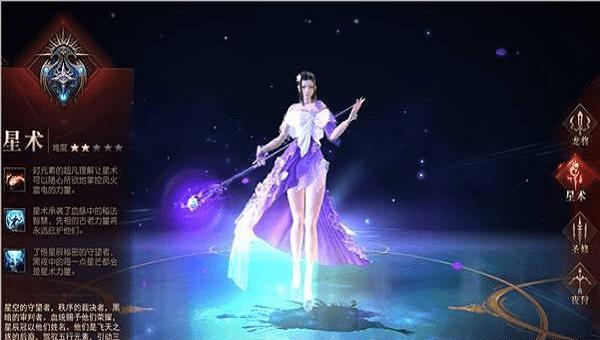 星术在游戏中是一个法师职业,暴力输出。星术属于法师职业,可冰控也可火攻,后期爆发伤害很高,PVE中控制、伤害很可观,不过在PVP中整体就有些逊色了,喜欢PVE的玩家可以考虑。另外星术大脆皮一个,一定要注意生存能力。