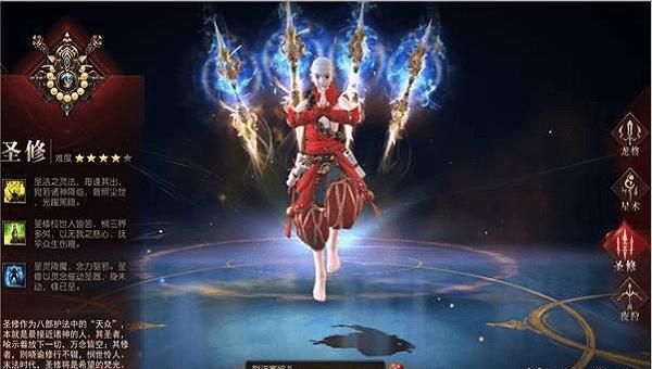 圣修是唯一一个可以跑动中施法的职业。圣修是镇魔曲中又一个全能发展的职业,他的技能可以驱散敌人的增益效果、单体治疗及持续范围回血等辅助技能,和殊音相比圣修的奶量更胜一筹,同时还能兼顾输出。输出流的和尚练度较高受众面也不是特别广,团队中走辅助路线的似乎更加抢手,不过圣修没有控制和位移技能,站桩打本很容易被牵制。