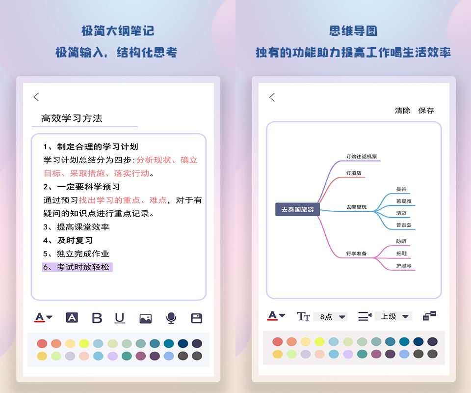 随身简易笔记app,作为一款清单式的笔记工具,对于办公人员来说非常实用。它不仅支持设置备忘录的背景颜色,并且能够原笔迹手写,还提供了丰富的记录模板,帮助用户清晰地梳理内容脉络。无论是排序、搜索笔记,还是轻松传输注释和附件,都有多种便捷方式可供选择。此外,随心转换、方便分享到微博等功能,增加了用户的使用体验。随身简易笔记app不仅可以快速制作思维导图,还能自由更换笔迹颜色,使用方法简单,保护用户信息的密码和指纹功能更是贴心设计,让用户更放心地记录重要事项和制定工作计划。