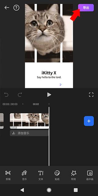 4、完成视频的编辑过后,你可以在右上角找到导出按钮,即可导出视频了。