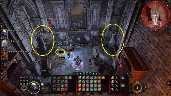 ⑤到达养育间审判官房间的西侧小房间,左侧雕像转到朝上(需要投掷油脂瓶或者油腻术),右侧雕像转到朝下;