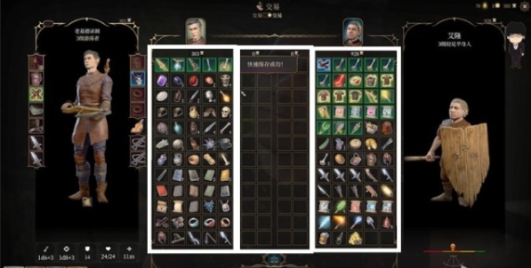 如果在扒窃界面进行保存,则读档出来的效果是使用了扒窃动作并关闭了扒窃界面,这里还望大家注意,而这个商人AI较为简单,基本保持背对我们,所以可以直接跳到下个回合继续我们的正义之手计划