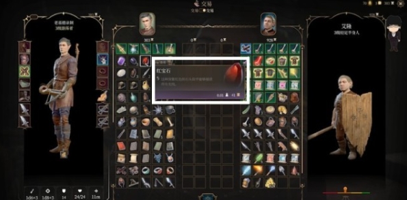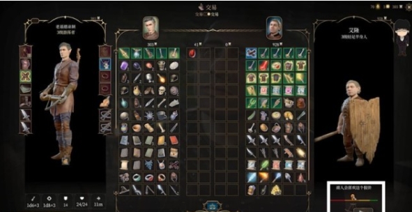 先上前交易,中间正上方是交易和赠予的开关,四竖排即为赠予界面。这里需要注意的是,赠予的东西价值越高,商人增加的好感度越多。同时价值越高的东西也越难偷取回来,所以这边看个人RP考虑