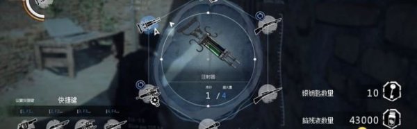 右下角是当前拥有的银钥匙量和脑残液数量。银钥匙是开启避难所医院藏尸柜的道具,可获得一些补给品。脑残液(笔者的叫法)是一种绿色液体,相当于经验值,用来升级主角能力和武器的性能。升级要在避难所医院的电椅上进行。