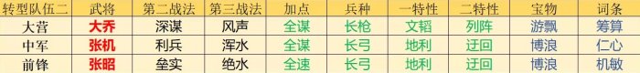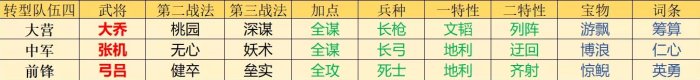 大张张的玩法,但一般不会用大月张开荒去转型,通过用得最多的是马妹或祝融张机大乔,大乔不再建议给战法兵无,这里推荐换深谋。
