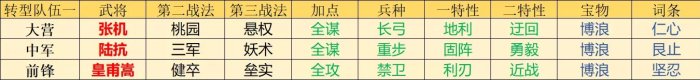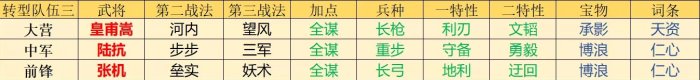需要二次转型的玩法,这队发育能力也很强,有减伤有恢复,也有一定的爆发输出能力,但非常吃武将配置,后期张机单独拉出去组一队。