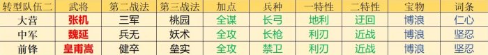 转型后的强度并不高,并且很吃战法,没有太好的选择,这里推荐再用木鹿,对法刀有一定的克制,前期打其他队伍都劣势,主要还是看魏延和浑水的发挥。