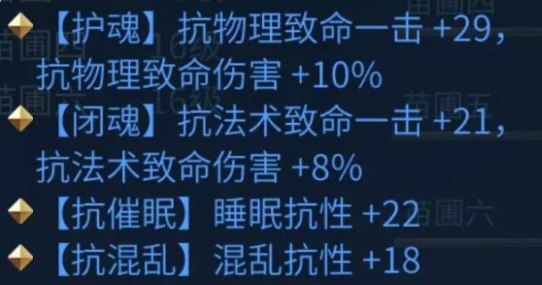 打辅助考虑带减元素抗等,注重自身致命的话,换上膏盲无医也是可以的。