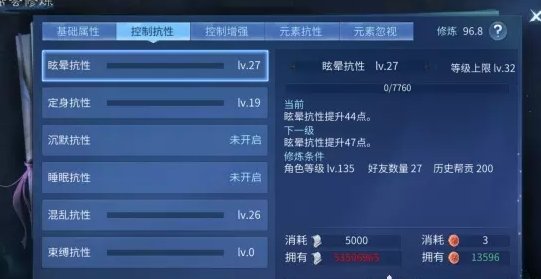 控制抗性:混乱抗性、眩晕抗性、沉默抗性、睡眠抗性(后期可点)
