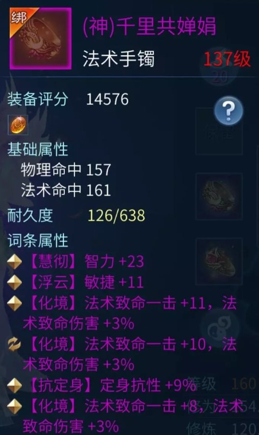 手镯:智力、致命、气血、敏捷、命中元素(毒)抗性比(做元素抗性的蝶客需要),最后就是无钻或者不修,大大提升命中,但是对