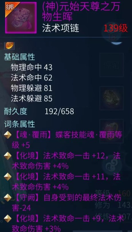 法宝套装属性:智力、敏捷、根骨、躲避(躲避蝶客选择)或命中【或者元素抗性】
